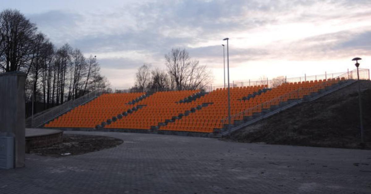 Amfiteatr w Sławnie - w 2017 r. na remontowany obiekt dostarczyliśmy ponad 800 szt. krzesełek stadionowych naszej produkcji. Na widowni zamontowano bardzo wygodne siedziska stadionowe WO-03.